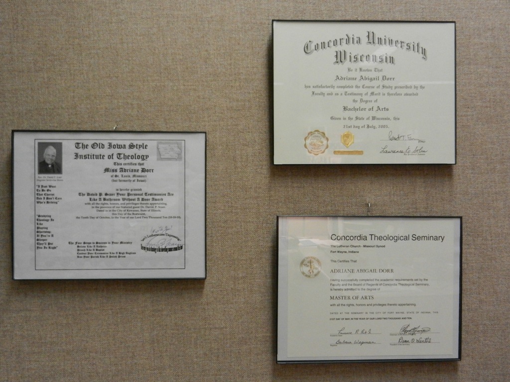 Oh, yes. And I love my diplomas too. I love my CUW diploma because that’s where I met one of my best friends, sat at the feet of theological and literary giants like Dr. Gene Veith, and suffered through painful amounts of Shakespeare with Dr. Tom Wilmeth.