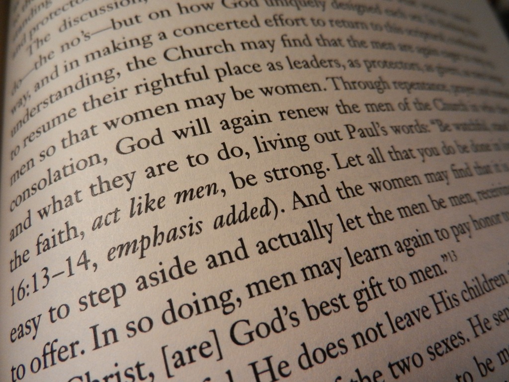 Show me that verse and I will capitulate, publicly. I will cast aside the centuries old Law/Gospel hermeneutic I have come to rely on over the last 25 years, adopt your giver/receiver hermeneutic, and be the first person to put my name on the waiting list for the Adriane Dorr Study Bible so I can have the expert footnotes telling me what the Scriptures really mean and how my wife’s sin, and the sin of every female in my church who opens her mouth, is all my fault.
