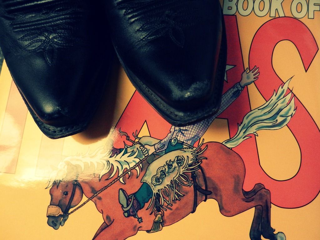 (1) Boot signing. It’s tradition. Ricky Skaggs put his name on this boot. Wylie (the guy who does the Yahoo! yodel) signed it. The members of Riders in the Sky have scribbled on it. And, uh, you know, well . . .