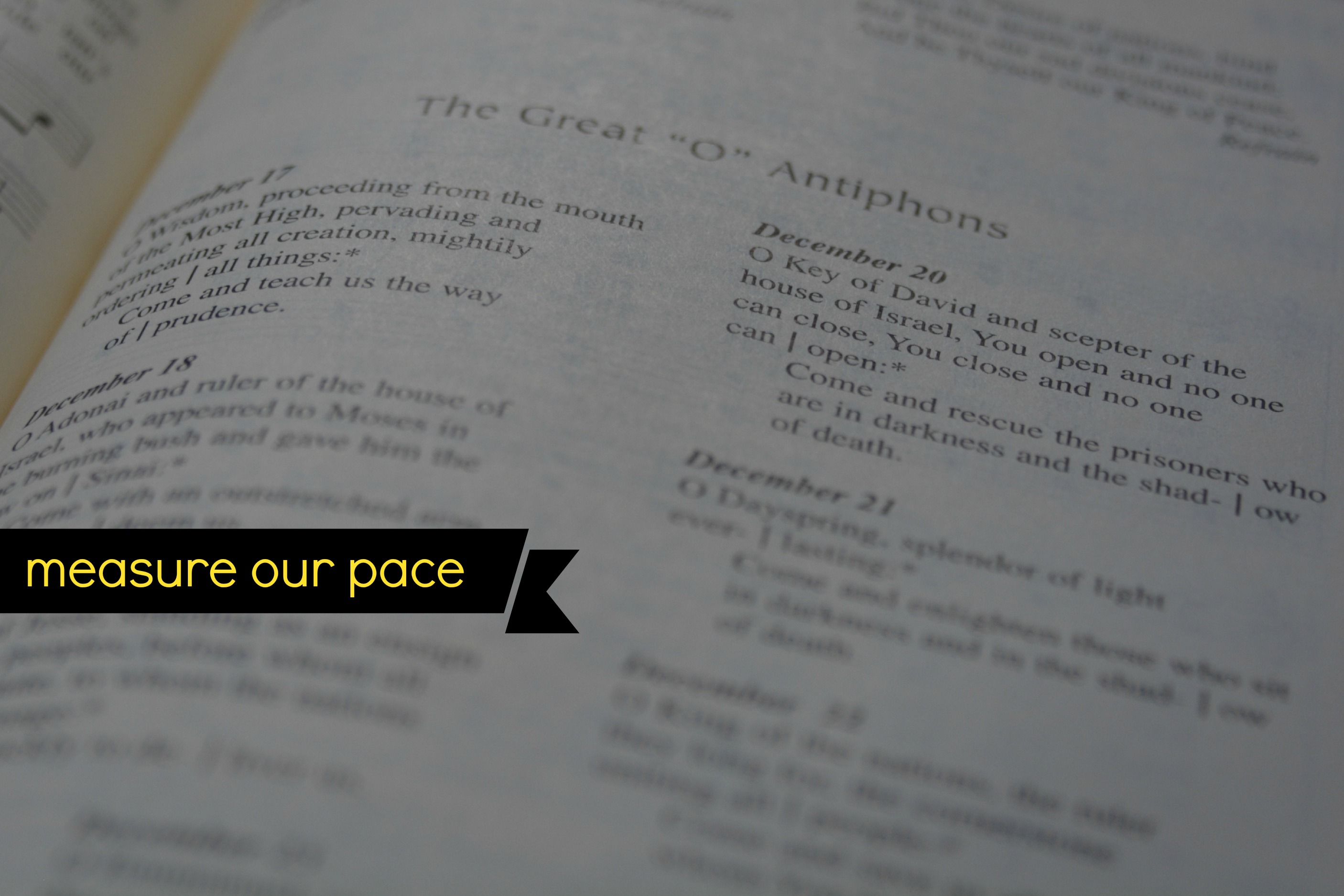 Let’s look to Christ, who is never rushed, never impatient. Let’s wait with the whole Church on earth, methodically and with grace. Let’s pray the O Antiphons. Let’s sing Advent hymns. Let’s look forward joyfully.